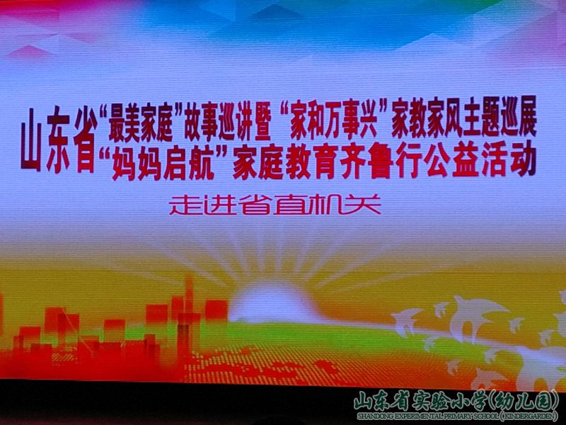 2018515日,執第25個國際家庭日到來之際,山東省婦聯在濟南舉行最美家庭故事巡講暨家和萬事興家教家風主題巡展媽媽啟航家庭教育齊魯行公益活動,山東省實驗小學(幼兒園)宋建芳、劉瑞雪、萬昌榮三位老師跟隨教育廳婦委會參加了此活動,領略優秀家教家風的熏染。