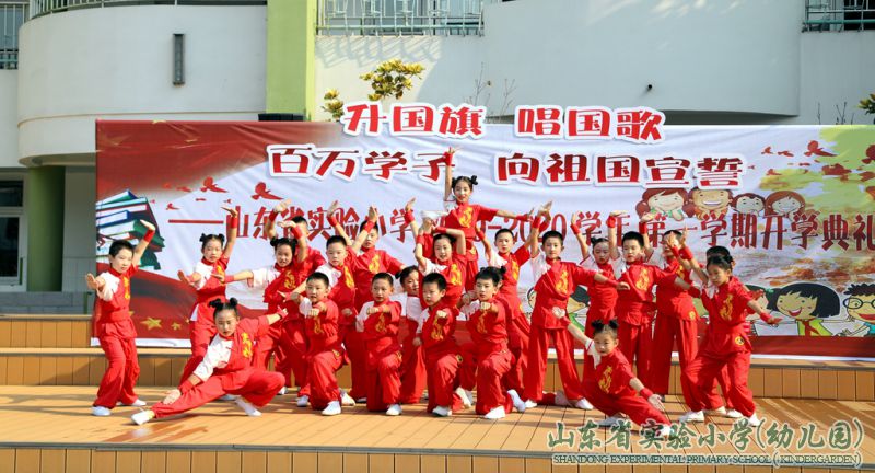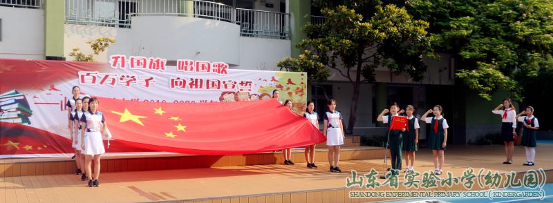 新學年伊始,學校舉行了主題為“用宣誓向祖國告白 以科技燃愛國熱情——升國旗、唱國歌,向祖國宣誓”的2019-2020學年度開學典禮。師生肅立,升國旗,唱國歌,剛剛在前一天晚上收看了“五星紅旗,我為你自豪”開學第一課的學生們,懷著加倍的激動與崇敬之情,向國旗敬禮,歌聲分外嘹亮。