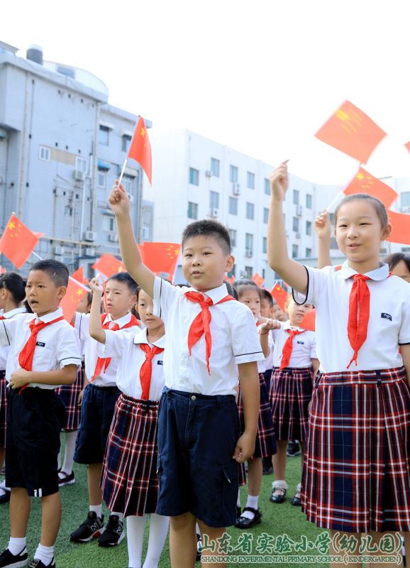 當鮮艷的五星紅旗在《歌唱祖國》的樂曲聲中展開,全體師生舉起右拳,面對國旗向祖國宣誓,立志把愛國情、強國志、報國行刻進心底,融入日常。