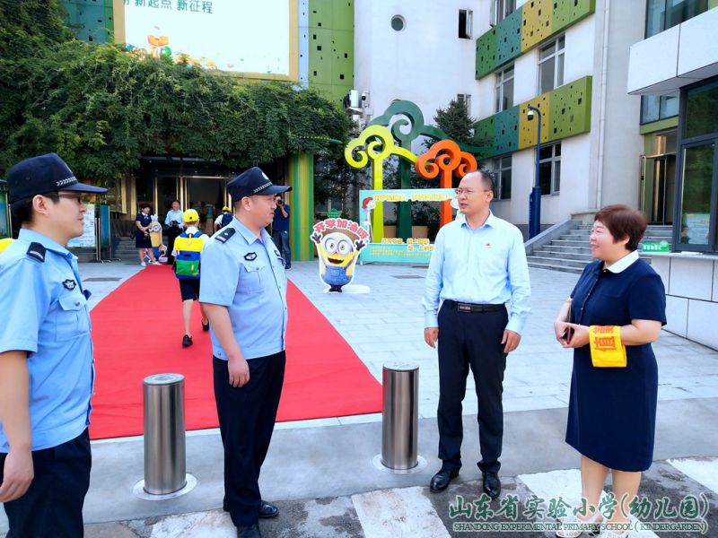 9月2日清晨,伴隨著初升的朝陽,我們迎來了新學年開學日。大紅地毯鋪就成長的儀式感,卡通人物為孩子們的新學期加油打氣,學校執勤的領導老師早早到崗,和執勤交警、派出所民警一起,為學生安全保駕護航。