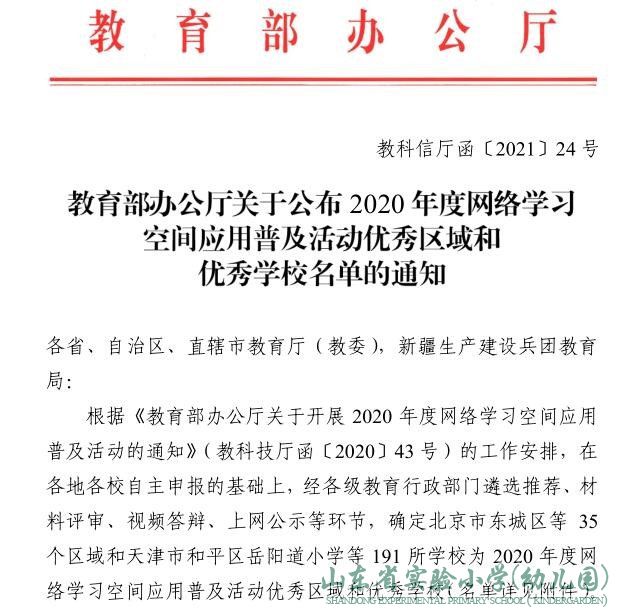 7月30日,教育部辦公廳發文正式公布2020年度網絡學習空間應用普及活動優秀區域和優秀學校名單。我校在《教育部辦公廳關于開展2020年度網絡學習空間應用普及活動的通知》的工作安排下,經過自主申報、遴選推薦、材料審評、視頻答辯、上網公示等層層選拔,被評選為2020年度網絡學習空間應用普及活動優秀學校!