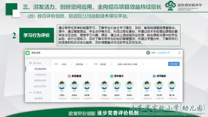 搭建智慧融通的技術保障平臺,打造教育行為評價、學習行為評價、專題活動評價三位一體的評價體系。