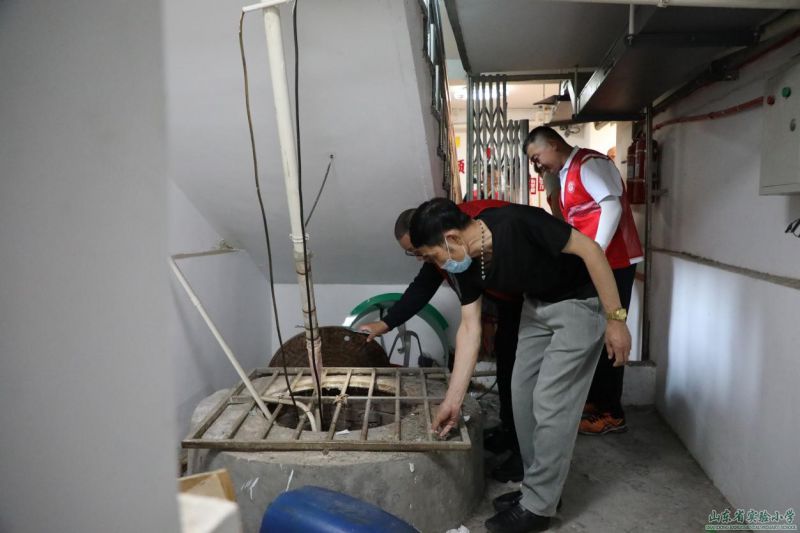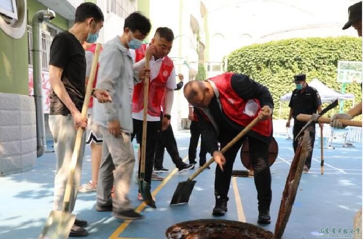 男教職工迅速到達(dá)進(jìn)入教學(xué)樓地勢較低位置,第一時(shí)間采取防汛措施,搬運(yùn)沙袋封住各個(gè)進(jìn)水口;快速打開井蓋,疏通管道,排出污水;檢查滲水井水位高度、滲水情況以及排水設(shè)施是否正常。