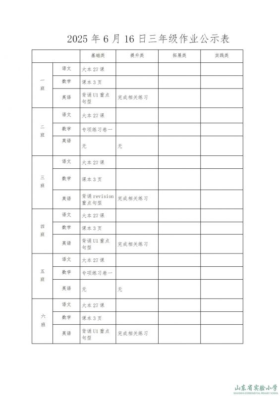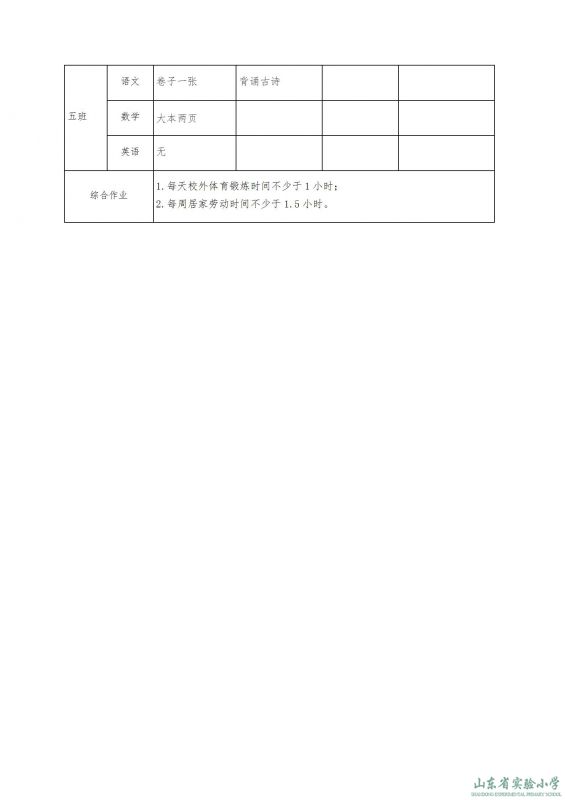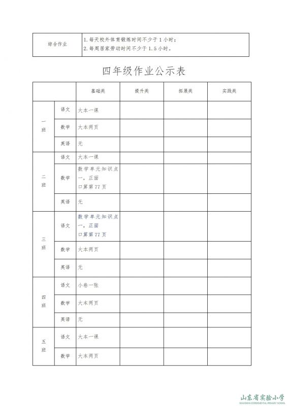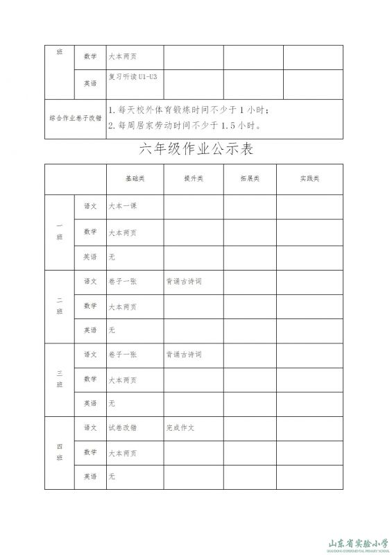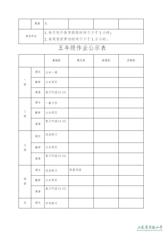 山東省實驗小學課程實施方案