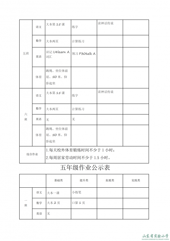 山東省實(shí)驗(yàn)小學(xué)課程實(shí)施方案