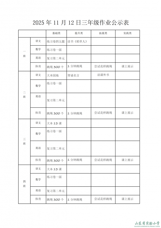 2025年11月12日作業(yè)公示